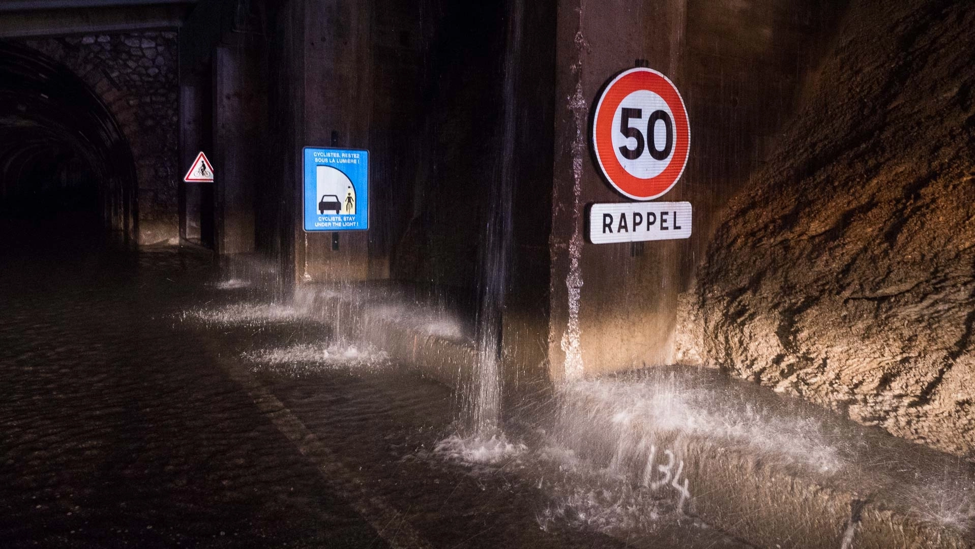 « De l'eau jusqu'aux genoux, c'est du jamais vu » constataient donc agents des routes, policiers, et pompiers hier soir a l'entrée du tunnel du saut. Plus de 50cm d'eau recouvrait la chaussée à l'entrée du tunnel en aval de la bifurcation avec le Villaret du Nial. C'est la conséquence des fortes précipitations de ces derniers jours, et du redoux qui a fait fondre la neige tombée sous 2000m. Conséquence, la route est restée fermée à toute circulation cette nuit. Certains automobilistes téméraires ont tenté la traversée, et n'ont réussi qu'a noyer leurs moteurs, ils ont été secourus par les pompiers. Pour éviter ces tentatives, les agents du services voirie de Val d'Isère ont ensuite installé des blocs béton aux deux extrémités des tunnels du Saut et du Chevril. Plus bas, une coulée de boue bloquait aussi la route dans les deux sens, au niveau du paravalanche des Pigettes. L’hébergement d'urgence a été activé à la maison de Val, 4 personnes y ont passé la nuit. Ce ne sont là que les derniers événements qui ont ponctué une journée difficile sur les routes hier, avec un premier éboulement vers 10h, en aval du tunnel des Brevières. Des rochers ayant atteint la route, la circulation se faisait par alternat, sens descendant. En fin de journée une première coulée de boue avait bloquée de nombreux automobilistes au niveau des Pigettes, avant qu'une chargeuse du service des routes n'intervienne pour dégager les voies.