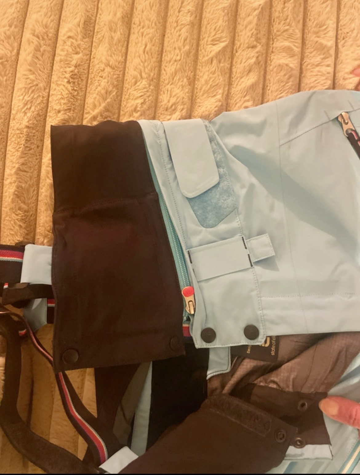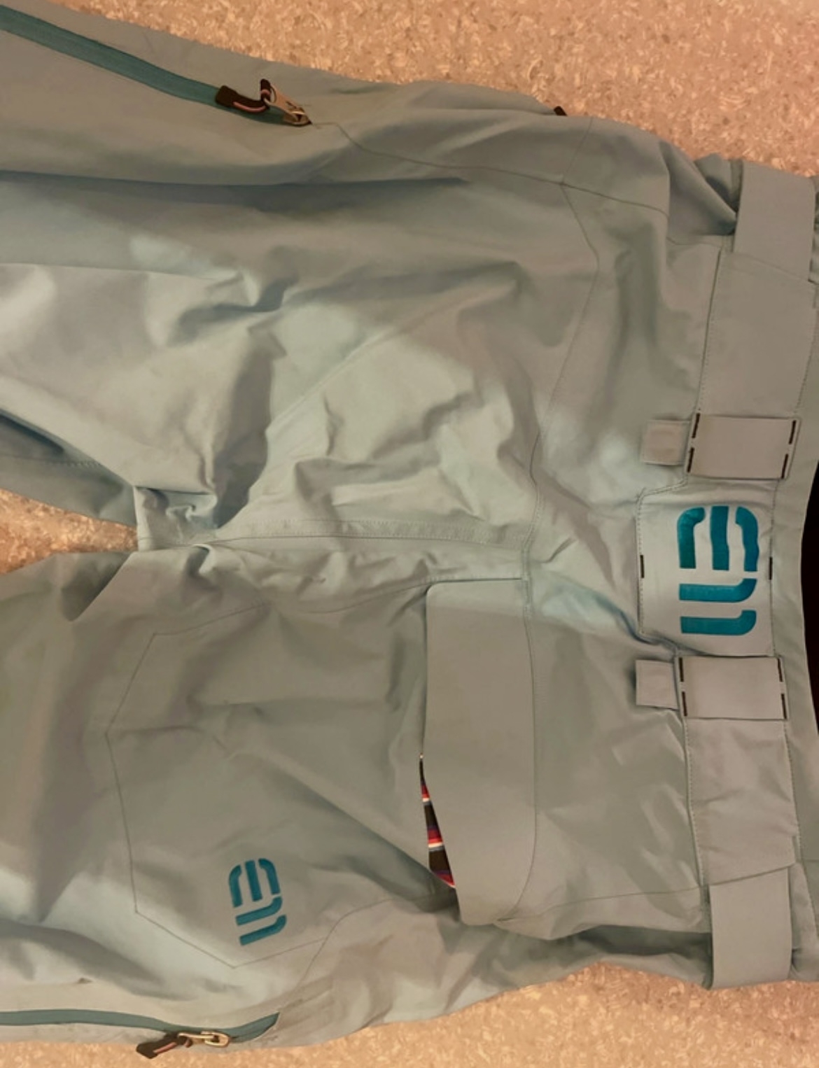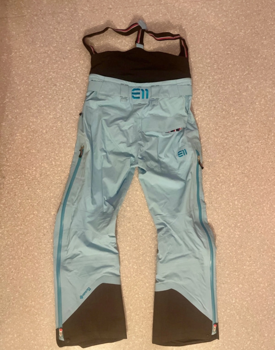 Pantalon de ski freeride très technique avec jupe, 2 poches avant zippée, zip latéral , bleu marque ELEVENATE Très bon état neuf 350€