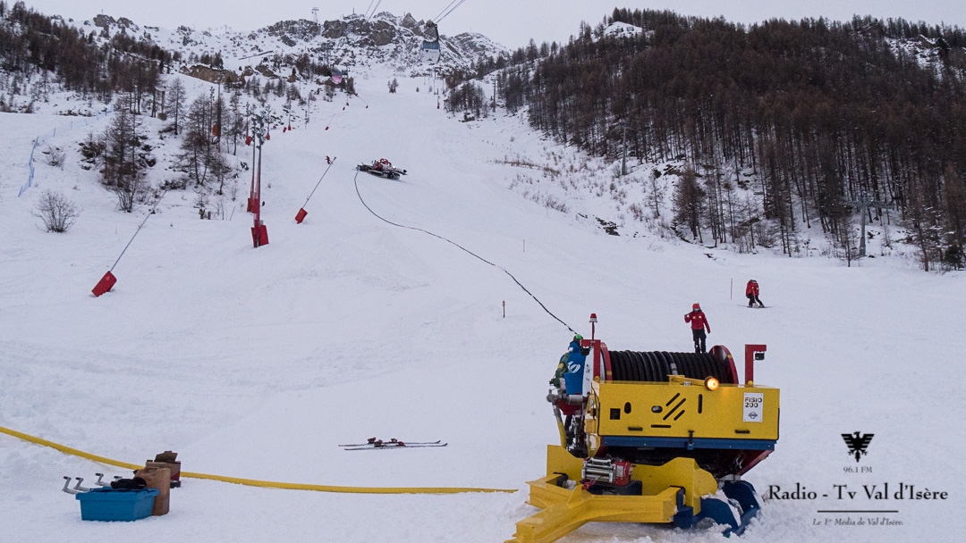 The ski patrollers also tested a new injection machine at the bottom of La Face slope throughout yesterday. This new concept comes directly from La Thuile in Italy and was loaned to the Val d'Isère patrollers for testing, as explained by Jean Bianchi, Head of the Racing Department at the Ski Patrol Authority.