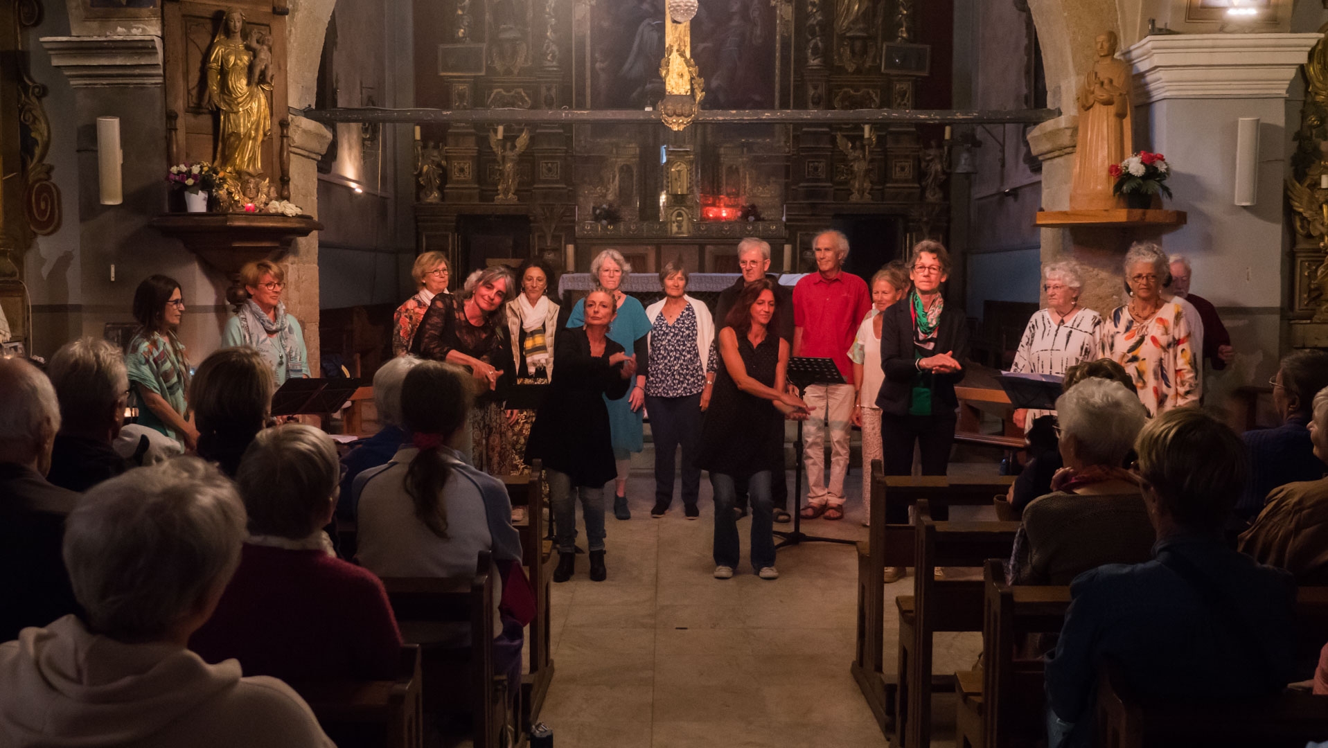 Ils étaient une centaine en l'église pour assister au traditionnel concert chants du monde hier soir. Chaque été depuis 2012, les choristes d'Annick Galichet et Denis Lombard proposent un concert de chants polyphoniques venus du monde entier. Des choristes d'une semaine qui participaient a un stage de chant et ont dû apprendre le répertoire en 7 jours. Les 20 choristes nous ont proposé un spectacle d'un peu plus d'une heure, composé de 13 titres allant de reprises de Bob Dylan à Zaz, en passant par des chants traditionnels, qu'ils soient a cappella ou accompagné de guitare et de percussions corporelles. Parmi ces choristes, 4 avalins, ou plutôt 4 avalines ont donné de la voix. Les photos sont à voir sur le site de Radio Val.